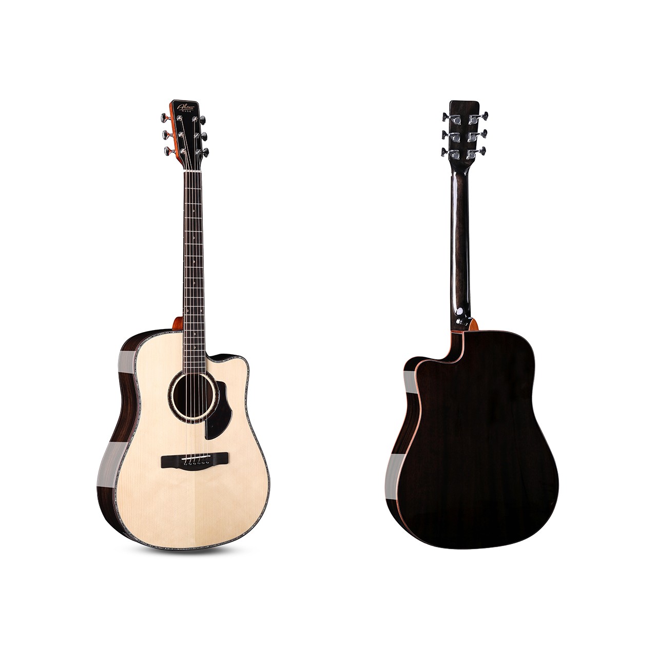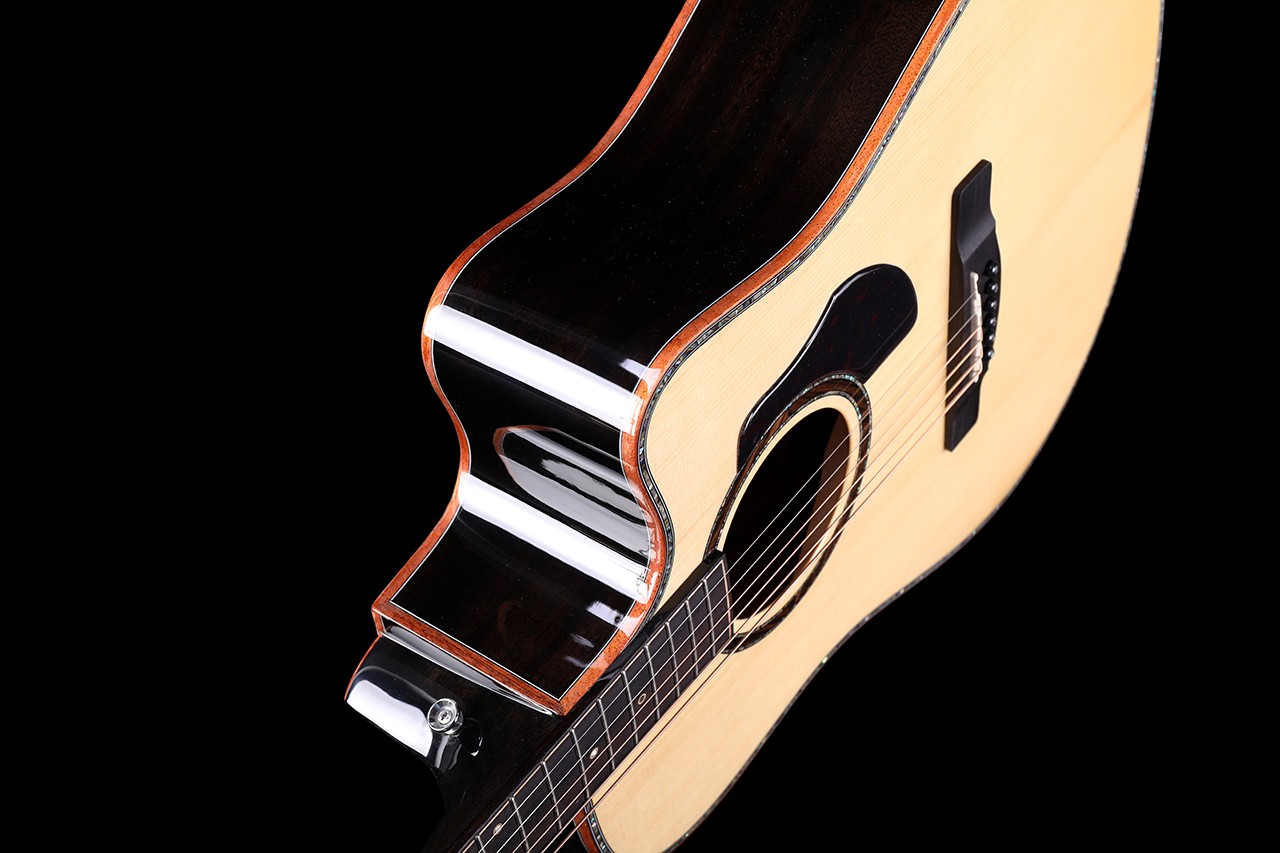 型号:AK-300D 尺寸:41寸DC桶 面板:云杉单板/桃花芯单板 背侧板:桃花芯单板 口轮花:深海鲍鱼贝 镶边:深海鲍鱼贝 弦钮:高精度鱼尾型封闭弦准 琴弦:进口磷铜镀膜高抗氧化 指板:玫瑰木 油漆:亮光