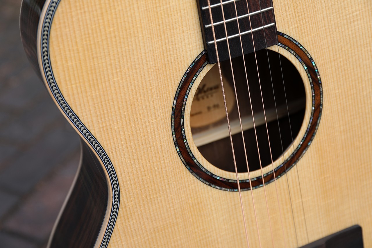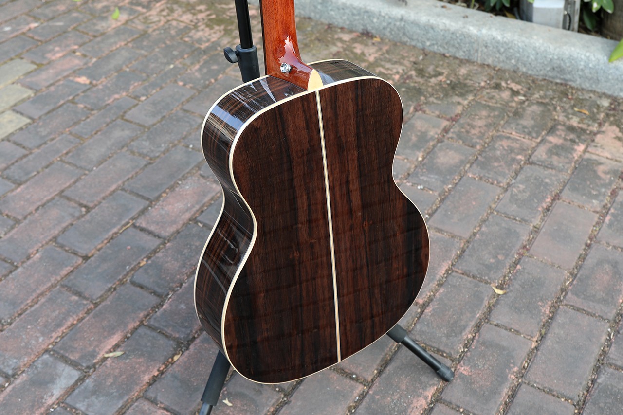 型号:D-96 尺寸:40寸 OM桶 面板:A级西提卡云杉单板 背侧板:黑檀木 口轮花:鲍鱼珍贝 镶边:实木 指板:玫瑰木(白贝镶嵌) 弦钮:19齿高精度全封闭 琴弦:达达里奥 EXP-16 油漆:亮光